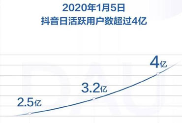 1月5日,抖音发布了2020年数据报告。截至2020年8月,抖音日活跃用户突破6亿,截止2020年12月,抖音日均视频搜索量突破4亿,每天有6亿网民通过抖音获取资讯、娱乐、学习。抖音相关负责人表示,6亿抖音用户共同经历了充满变数的一年,报告从用户表达、内容价值等多个维度,展现了抖音记录的美好生活。